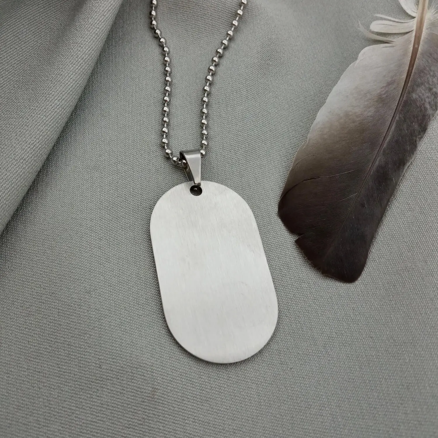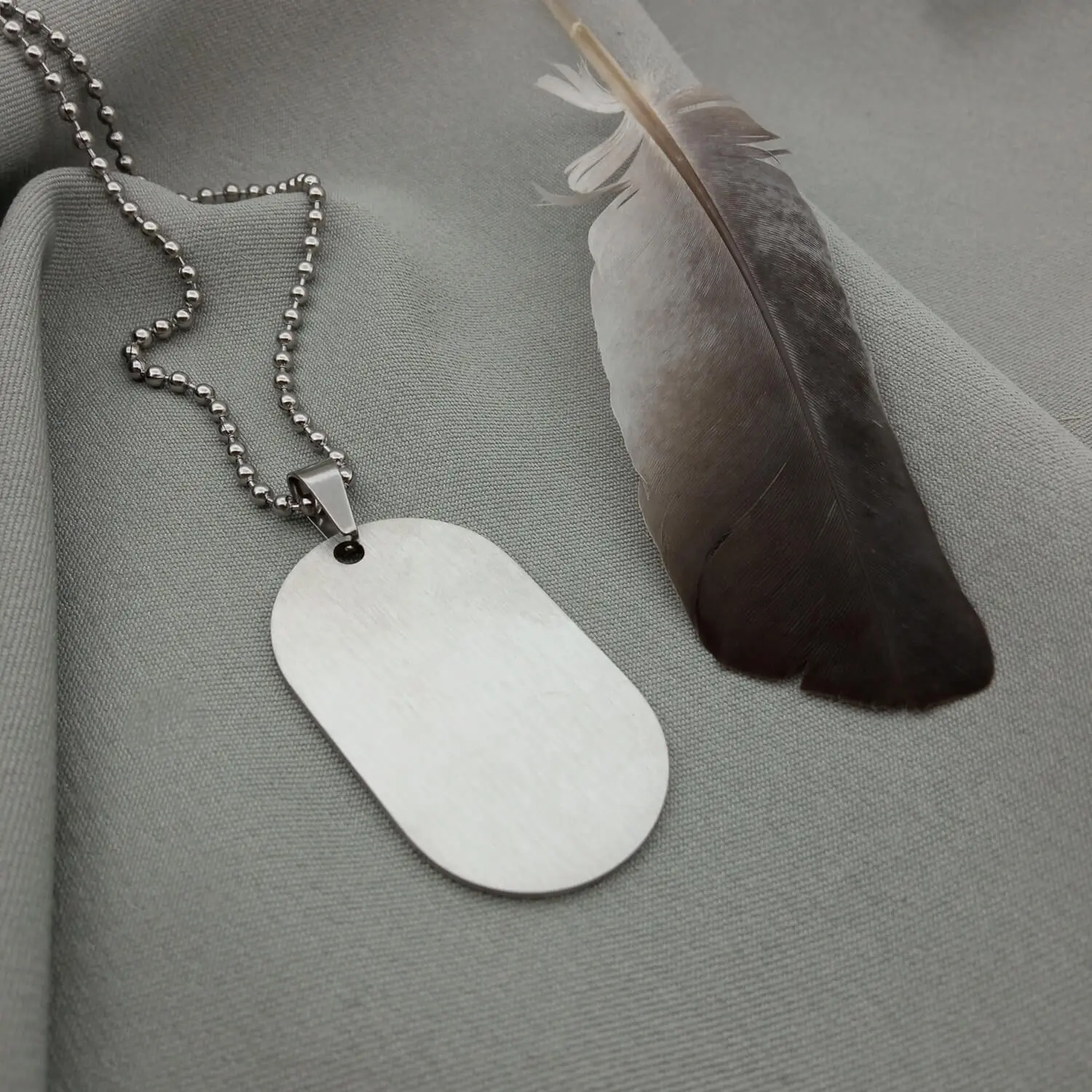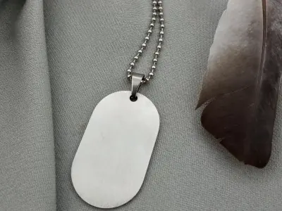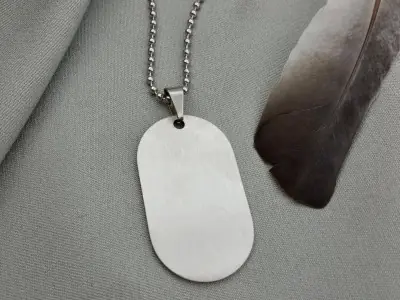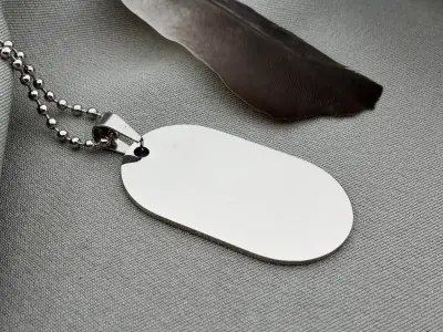 Сучасний аналог армійського жетону виготовляється з надійної ювелірної сталі 316L, яка не згорає у вогні, не іржавіє та не бруднить ваш одяг. До кожного жетону додається в комплекті кульковий ланцюжок довжиною 60 см, який виготовлено з аналогічної нержавіючої сталі, тому він не темніє з часом.