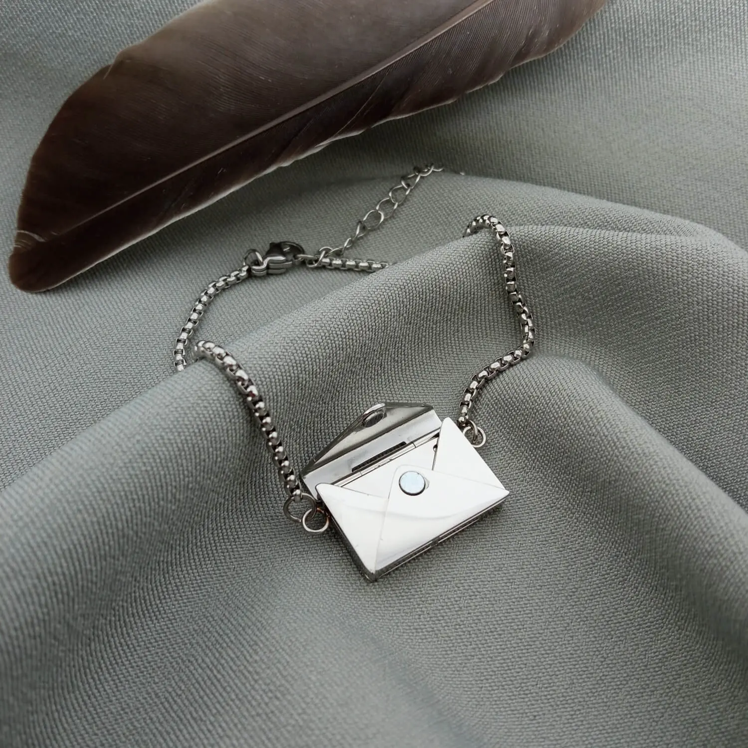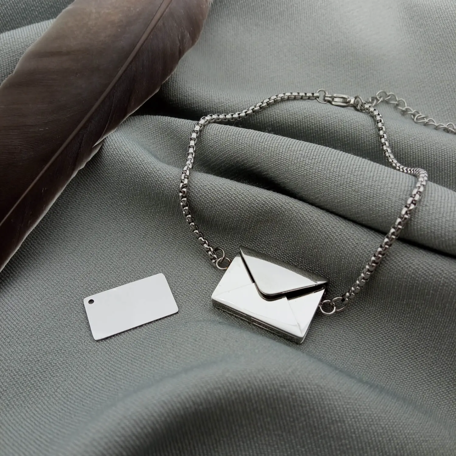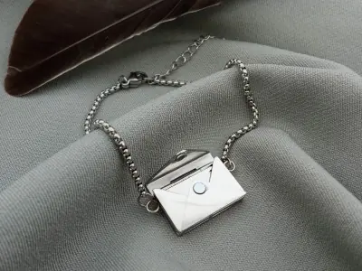Стильний браслет "Конверт" – це витончений спосіб сказати найголовніше без слів. Усередині сріблястого конвертика приховано маленький лист-послання, на якому може бути вигравіюване ваше особисте побажання, фраза, символ чи навіть мініатюрне зображення. Прикраса вражає своїм сенсом: ваша історія, почуття чи важливе нагадування завжди поруч, але приховані від сторонніх очей. Конверт щільно закривається, забезпечуючи надійне зберігання листа всередині. Виготовлений з ювелірної нержавіючої сталі браслет не втрачає блиску й пасує до будь-якого стилю. Ідеальний подарунок, сповнений змісту, ніжності та емоцій.